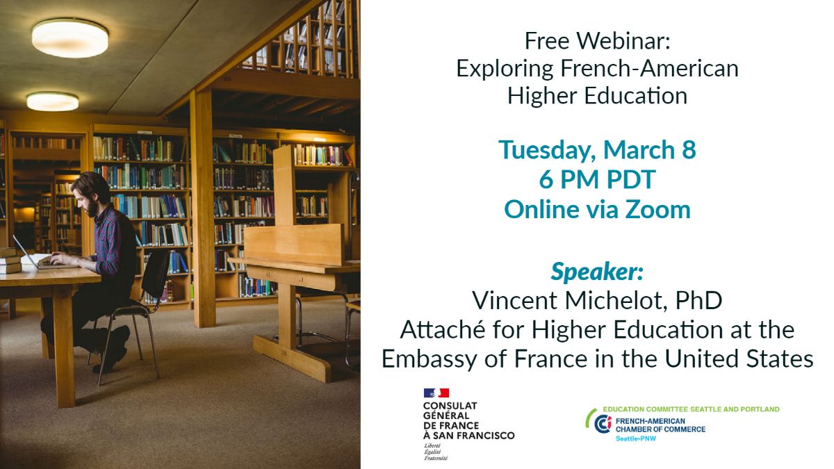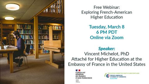 Join the Education Committee in March for a conversation with Dr. Vincent Michelot, Attaché for Higher Education at the Embassy of France in the United States, entitled "French-American Programs and Bilingual University Diplomas." Dr. Michelot will discuss the similarities and differences between higher education in France and in the United States, the concrete choices high-school students (and their parents) face when deciding to pursue a licence or a bachelor's degree, and some options available for dual degrees.