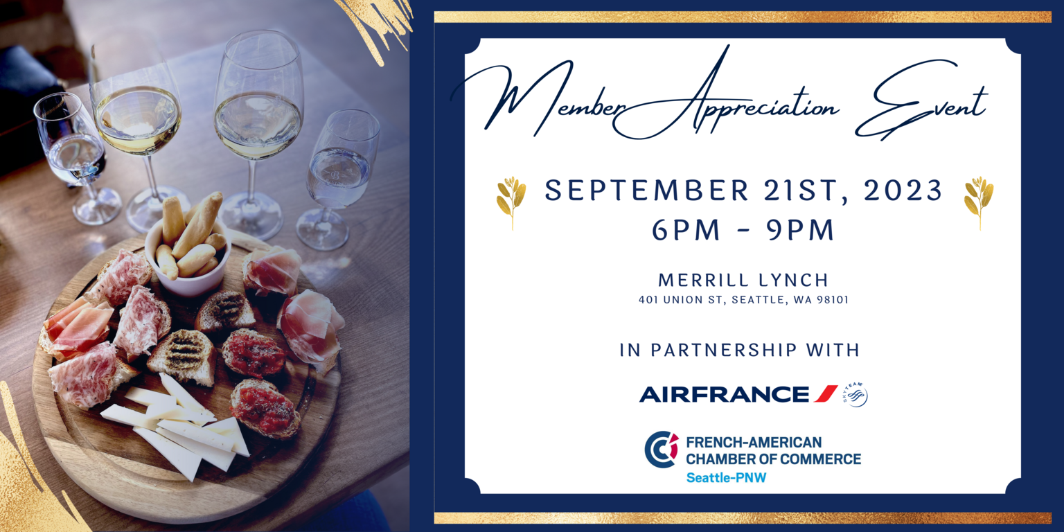 In partnership with Air France, FACC PNW would like to invite all members to enjoy a cocktail reception on the evening of Thursday September 21. The event is an opportunity for FACC-PNW to thank members for everything that they make possible. It will also be a great chance to network and hear updates from FACC-PNW President, Julien Hervet. The event is free for all members. Beverages and appetizers will be provided.