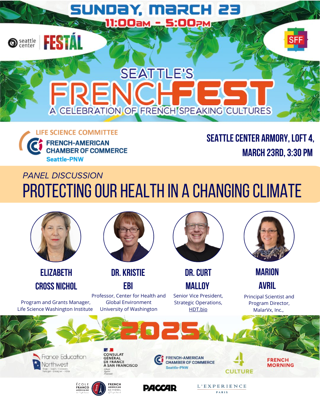 Climate change is accelerating the spread of diseases by altering ecosystems, expanding the habitats of disease-carrying organisms, and increasing extreme weather events that directly impact our health. Join this session lead by the Life Science Committee of the French American Chamber of Commerce Seatle PNW, where our panelists will discuss what scientists, health care providers, and each of us can do to protect our health.