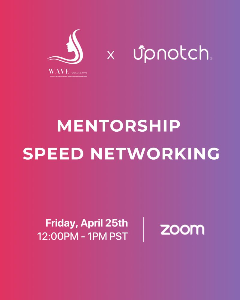 Whether you're looking for a mentor or hoping to mentor others, or just want to make new connections, this is the perfect opportunity to connect you with inspiring women in a structured, dynamic, and judgment-free space. As a reminder, while a profile on Upnotch is not required to attend, we encourage you to create one to continue building meaningful connections on our private, free and members-only WAVE community on Upnotch. It only takes 2 minutes—create your profile here!