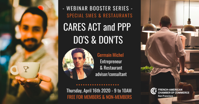 Join the FACC-SF on Thursday, April 16th for their Webinar Booster Series - Special SMES & Restaurants! Germain Michel, founder and co-owner of Amelie Wine Bar & Bistro, will share his expertise about CARES ACT and PPP.