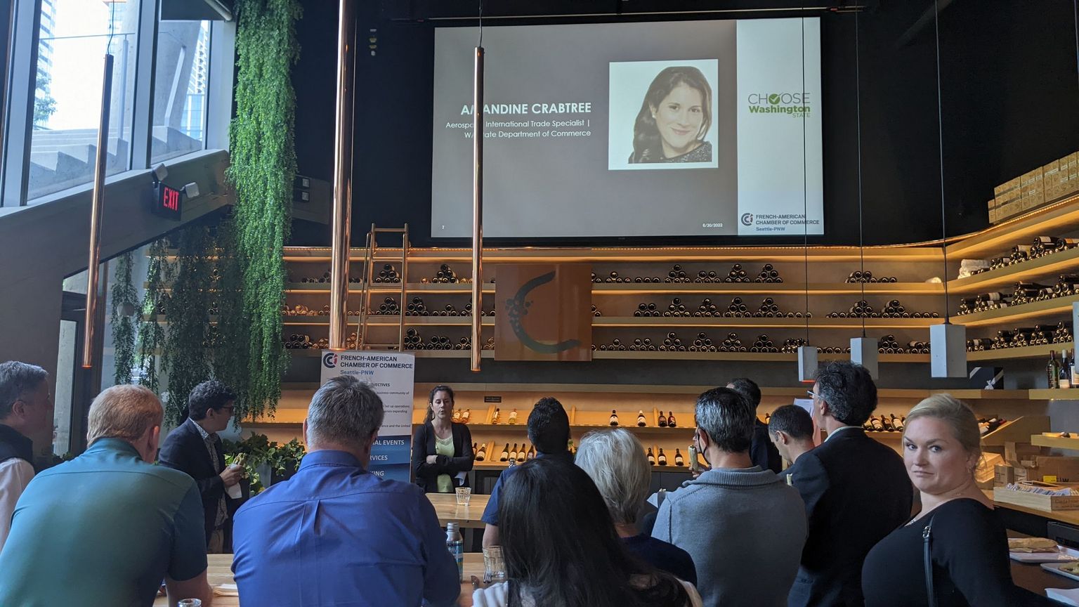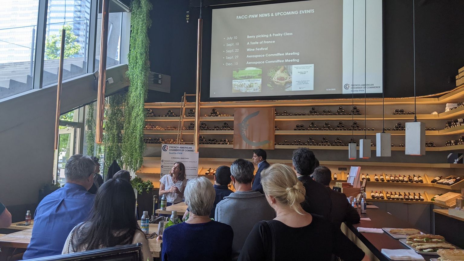 Amandine Crabtree, from the WA State Department of Commerce, gave us a feedback on the 2022 Aircraft Interiors Expo and, finally, Ariane Ogier presented the next events of the FACC.