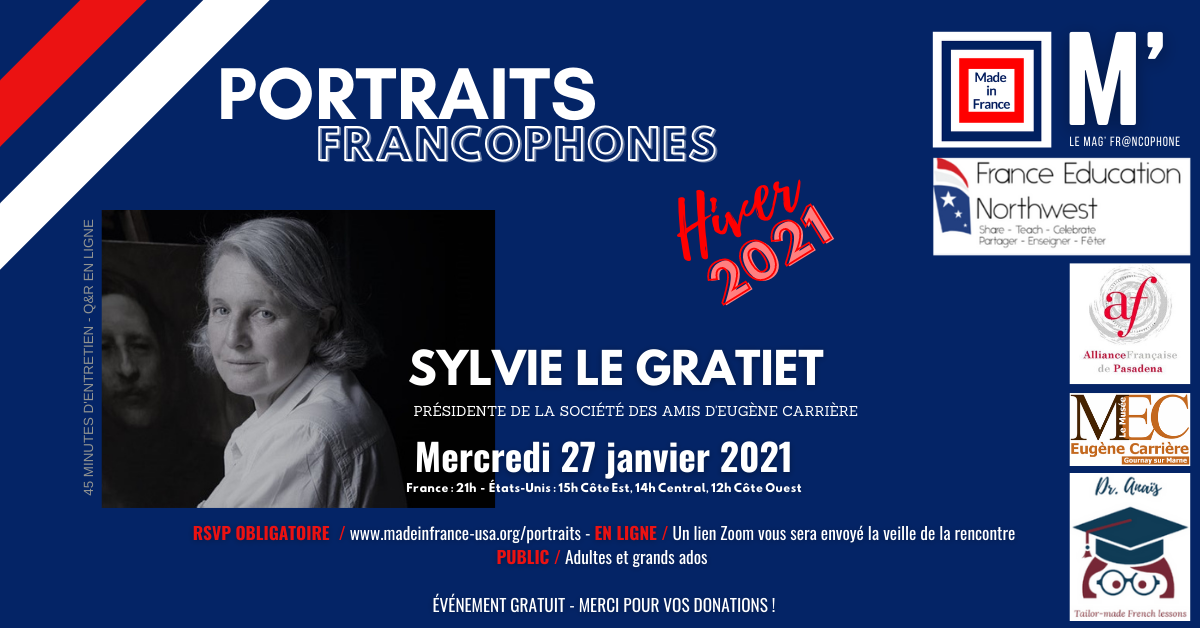 This public interview is a Made in France event developed in partnership with Musée Eugène Carrière, France Education Northwest (FEN), Dr. Anaïs, Alliance Française de Pasadena and Mag’ fr@ncophone.