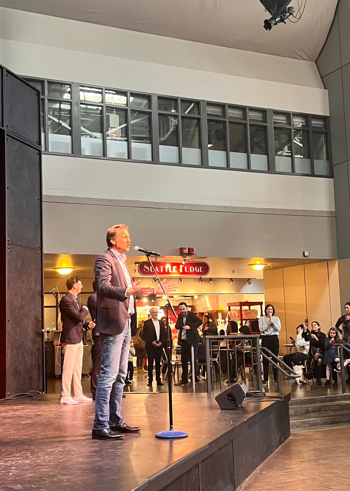 For the official opening, we were fortunate to have Frédéric Jung, General Consul of France in San Francisco, Christopher Weissberg, Member of the Parliament for the French living in North America, Nathalie Beaudoin, Foreign Policy and Diplomatic Service, Consulate General of Canada in Seattle, Darijo Bosjak, Acting Director of Workforce and Talent Development, Québec Trade Office in Silicon Valley, and Philippe Goetschel, Honorary Consul, Consulate of Switzerland in Seattle.